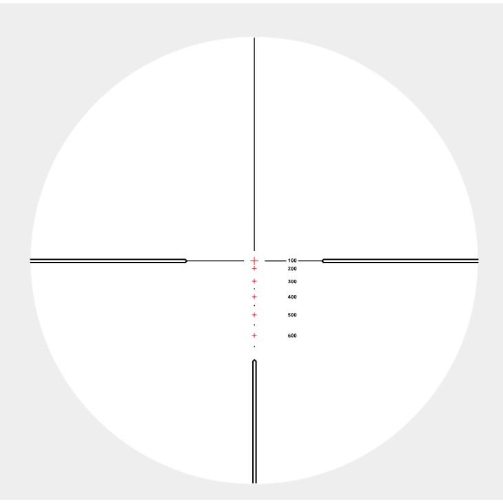 Les réticules .223/.308 Marksman sont conçus pour être précis lorsque la lunette de visée est à son grossissement maximal. Le croisillon central très proéminent est réglé à 100 yards. Une fois le réglage effectué, les repères de compensation de visée sont prédéfinis jusqu’à 600 yards. En réduisant le grossissement en conséquence, le réticule peut également être réglé à 100m avec des repères jusqu’à 600m.
